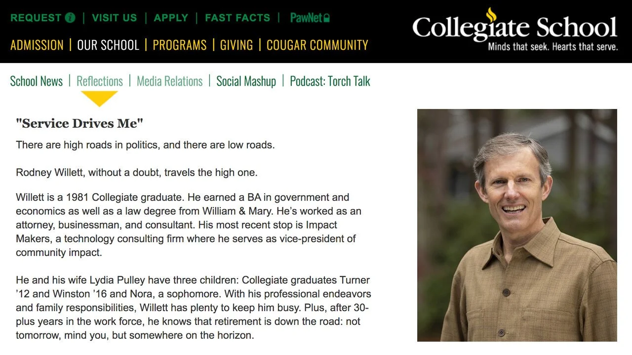 Home In the Media Rodney Willett 5/26/22 Rodney Willett 5/26/22 Rodney Willett and Schuyler VanValkenburg column: State policy must offer flexibility to retain workforce Read More Rodney Willett 5/26/22 Rodney Willett 5/26/22 Richmond Ismaili community celebrates official opening of Glen Allen Jamatkhana Read More Rodney Willett 5/26/22 Rodney Willett 5/26/22 Rodney Willett column: Behavioral health support is a bipartisan priority Read More Rodney Willett 10/6/21 Rodney Willett 10/6/21 Willett Seen As Top Competitive House Race Read More Rodney Willett 10/6/21 Rodney Willett 10/6/21 Willett Column on Expanding Virginia's Continuum of Behavioral Health Care Read More Rodney Willett 5/11/21 Rodney Willett 5/11/21 Willett Talks Competitive 2021 Re-Election Campaign Read More Rodney Willett 5/11/21 Rodney Willett 5/11/21 Willett Joins the Richmond Sikh Community in Mourning Victims of Indianapolis Shooting Read More Rodney Willett 5/11/21 Rodney Willett 5/11/21 Willett Discusses Mental Health and Substance Abuse Recovery with the McShin Foundation Read More Rodney Willett 5/11/21 Rodney Willett 5/11/21 Willett Named DLCC Spotlight Candidate for 2021 Election Read More Rodney Willett 5/11/21 Rodney Willett 5/11/21 Willett Talks Electric Vehicle Rebates and EV Infrastructure Read More Rodney Willett 5/11/21 Rodney Willett 5/11/21 Willett Passes Legislation to Reduce Barriers for Renewable Energy Projects Read More Rodney Willett 5/11/21 Rodney Willett 5/11/21 Willett Passes Legislation to Support Military Families Read More Rodney Willett 5/11/21 Rodney Willett 5/11/21 Willett Protects Restaurants During COVID-19 Pandemic Read More Rodney Willett 10/24/19 Rodney Willett 10/24/19 Willett VPM/NPR Interview Read More Rodney Willett 10/11/19 Rodney Willett 10/11/19 Western Henrico as a Shifting Political Battleground Read More Rodney Willett 9/28/19 Rodney Willett 9/28/19 On Richmond's Morning News Read More Rodney Willett 9/18/19 Rodney Willett 9/18/19 Willett Driven by Service Read More Rodney Willett 9/2/19 Rodney Willett 9/2/19 Virginia Business Read More Rodney Willett 8/27/19 Rodney Willett 8/27/19 Politics and Mental Health Read More Rodney Willett 8/26/19 Rodney Willett 8/26/19 Rodney on Richmond's CBS 6 Read More